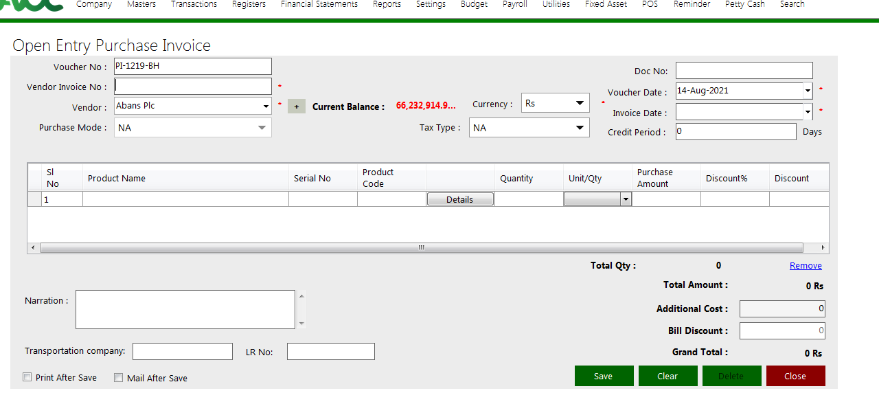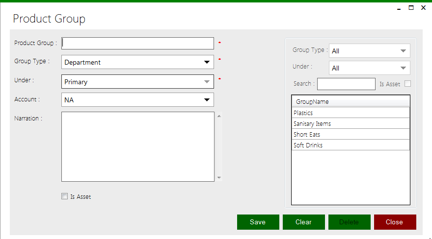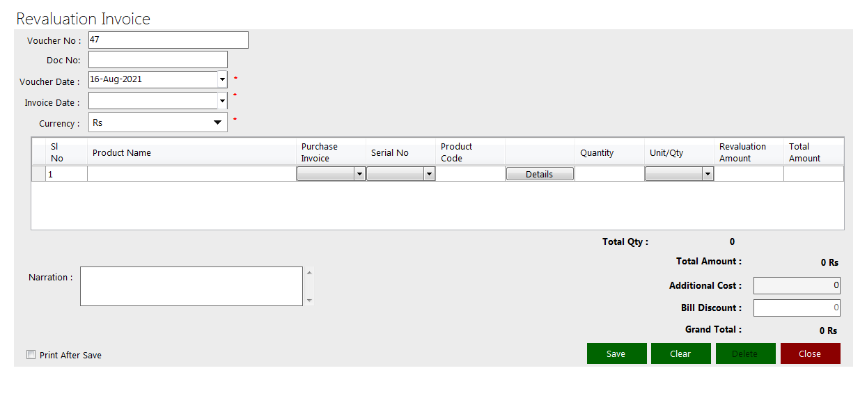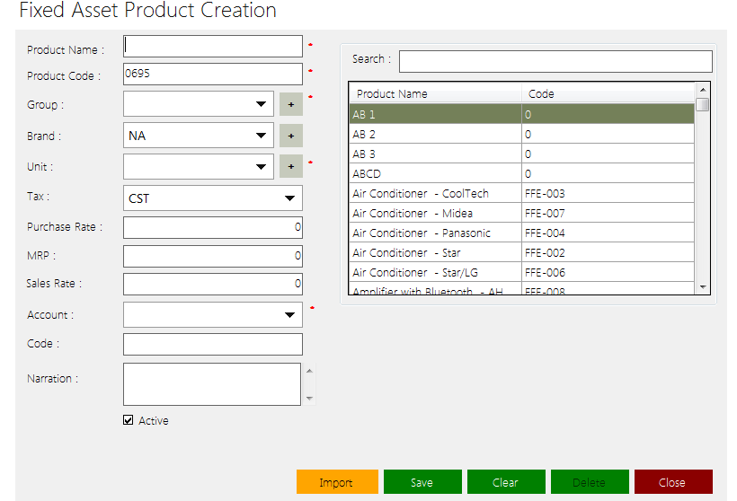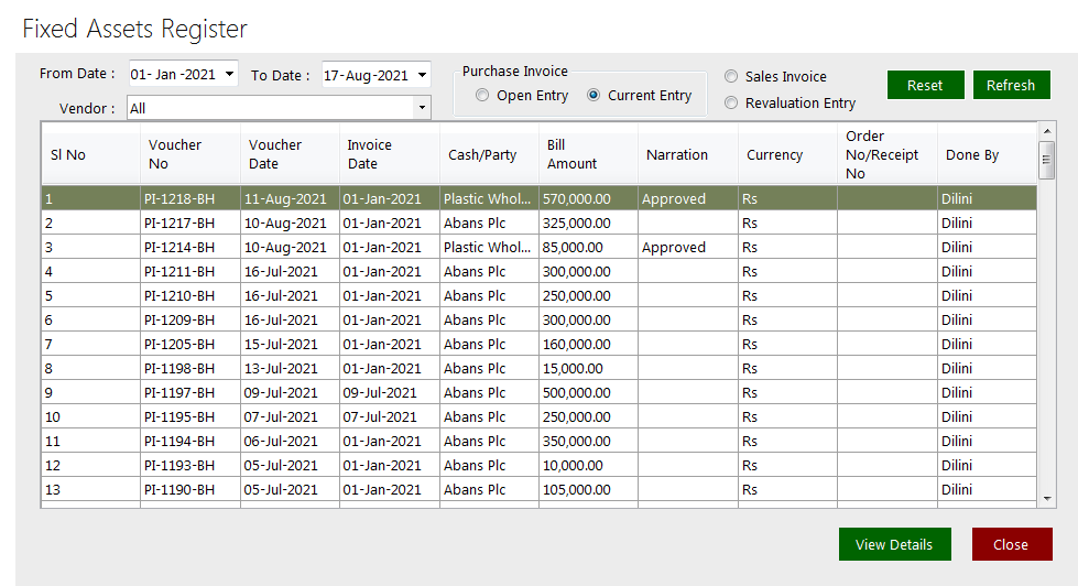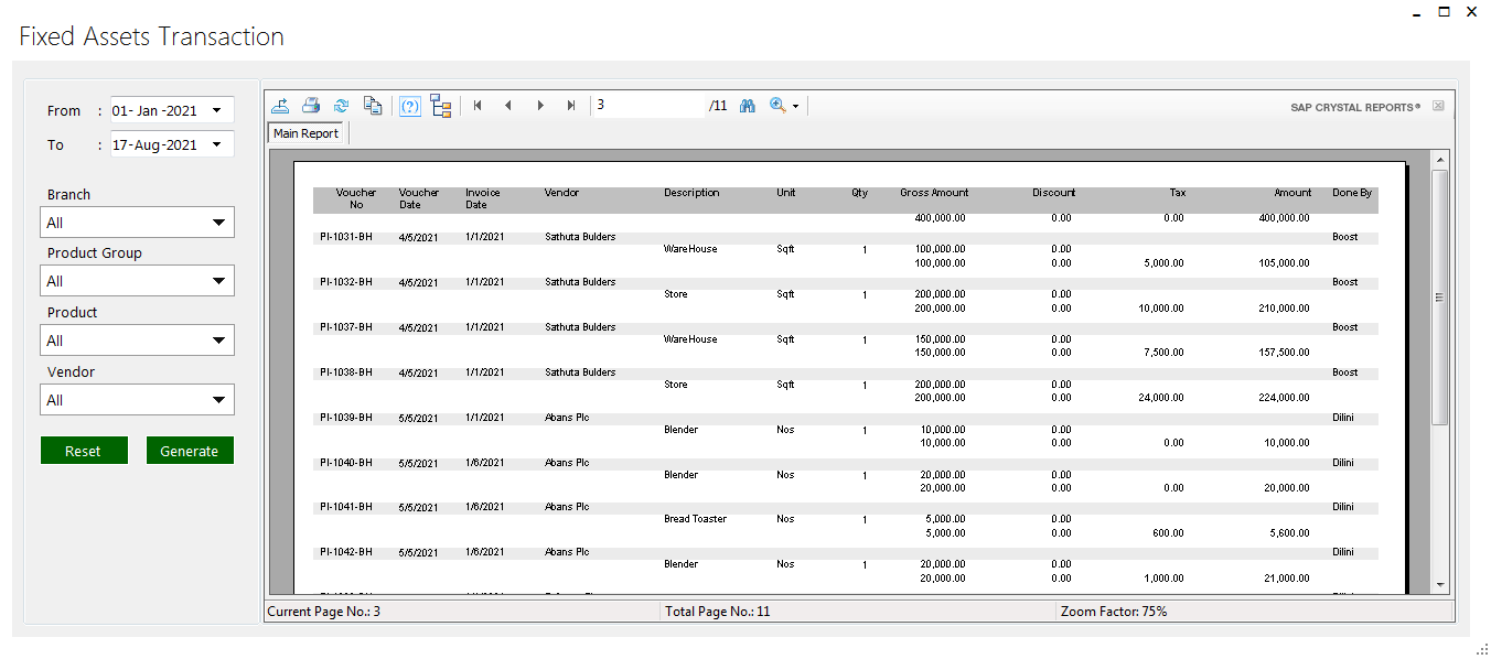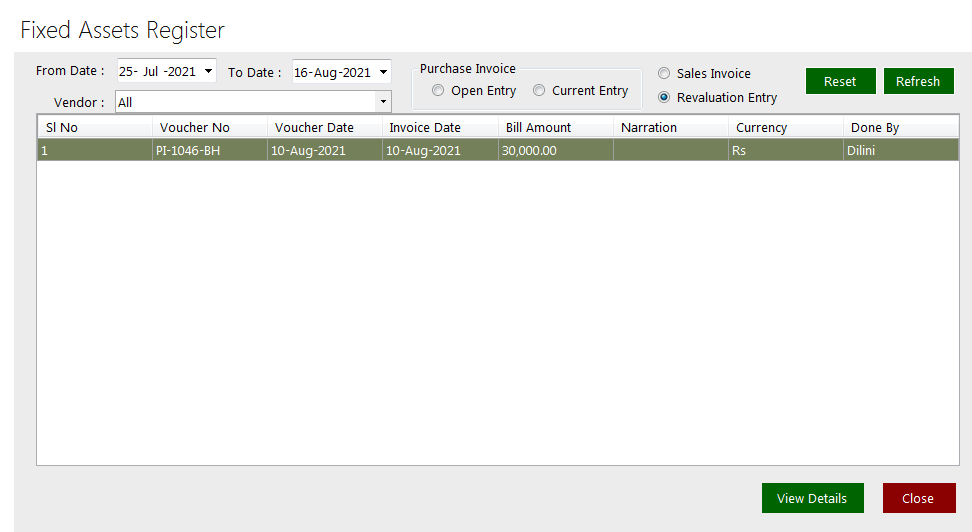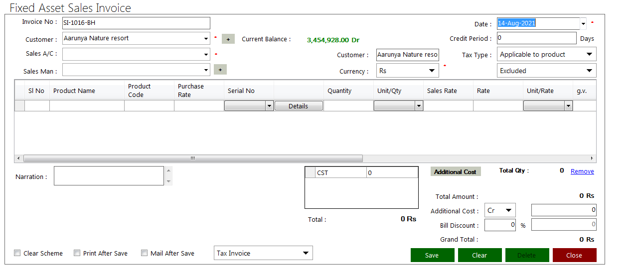 This is to enter the details related to fixed assets sales or disposal. The interface of the vouchers as follows.