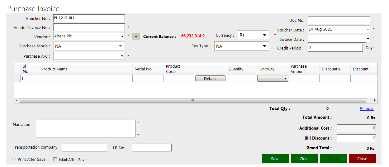 Invoice No: The invoice number is appeared automatically. Can customize.