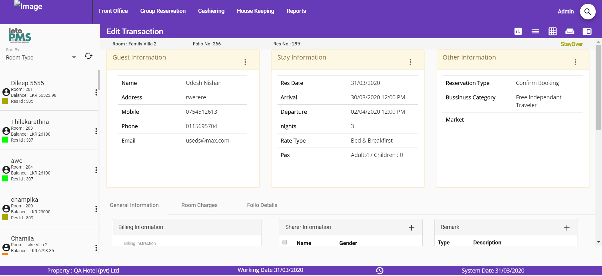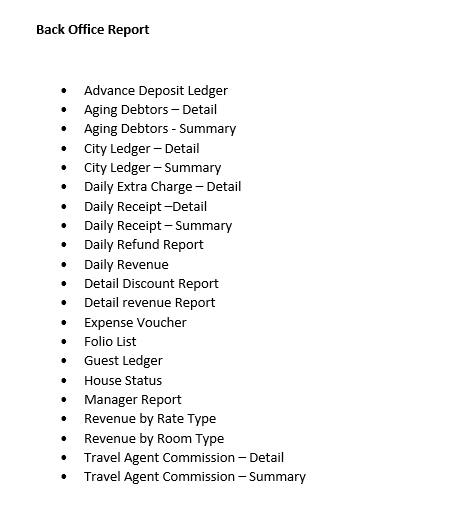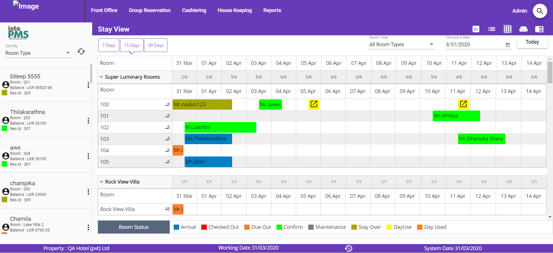 It will list the number of rooms which are – Dirty, Under maintenance, Occupied Clean, Occupied Dirty, and Vacant Clean.